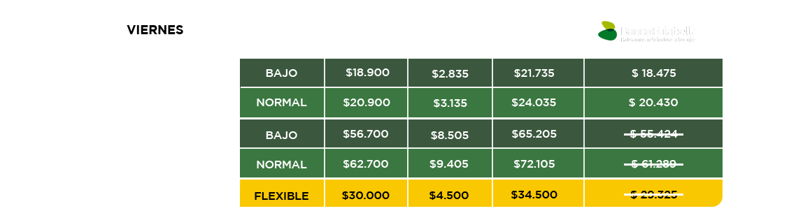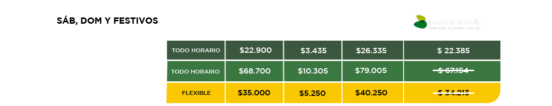 - * Horario Flexi Ticket: todo horario.